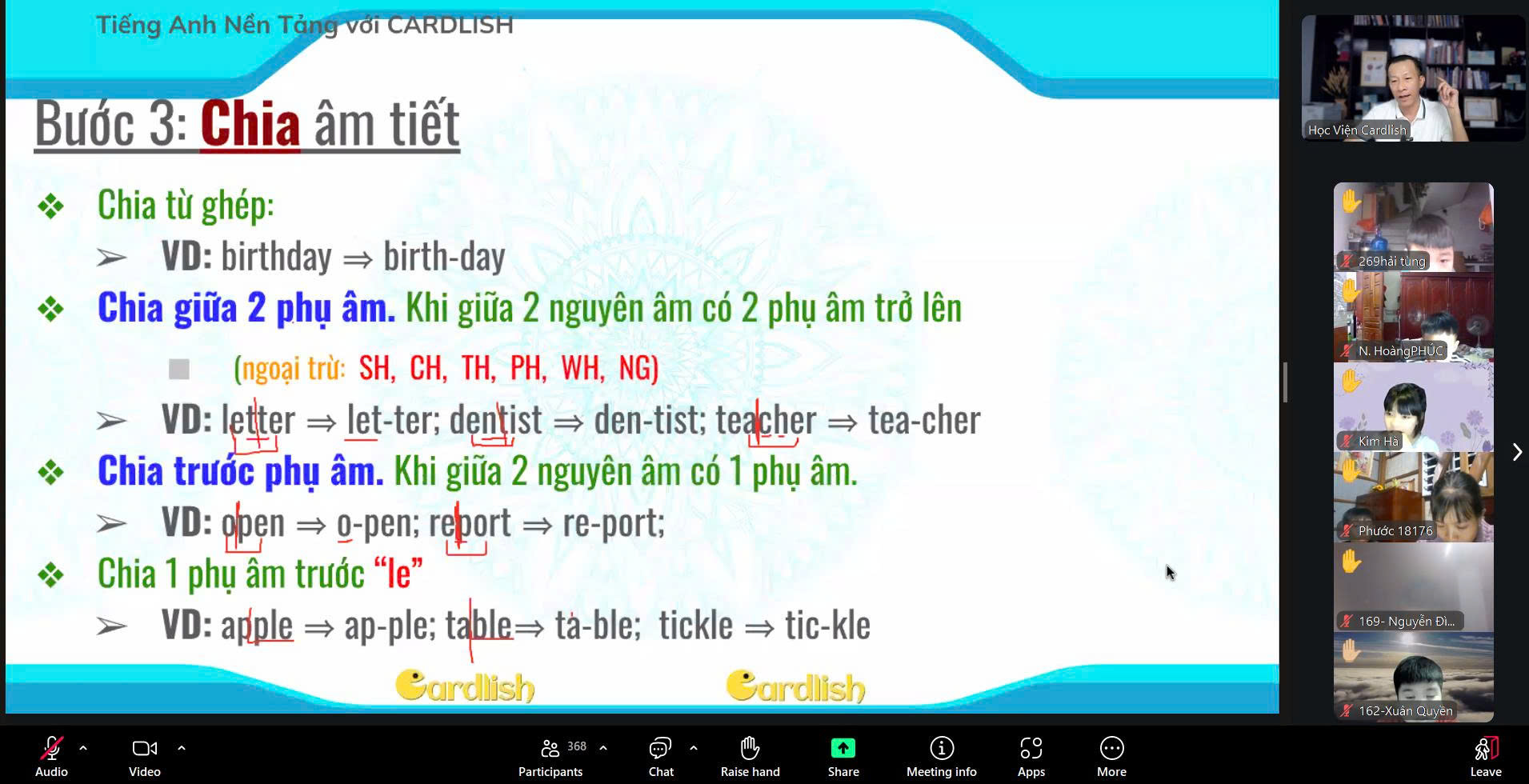 * Chia nhỏ từ vựng dài để dễ ghép âm gieo vần từng từ nhỏ